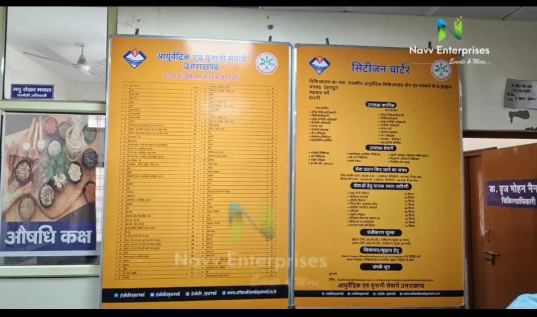 Outdoor branding work with laminated vinyl and white board was done for the District Ayurvedic Department, Dehradun. The project was executed by Navv Enterprises...